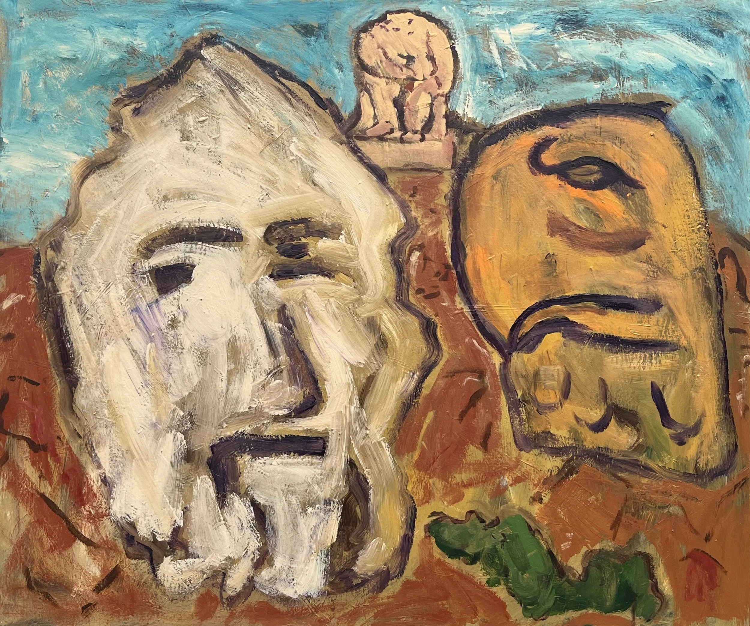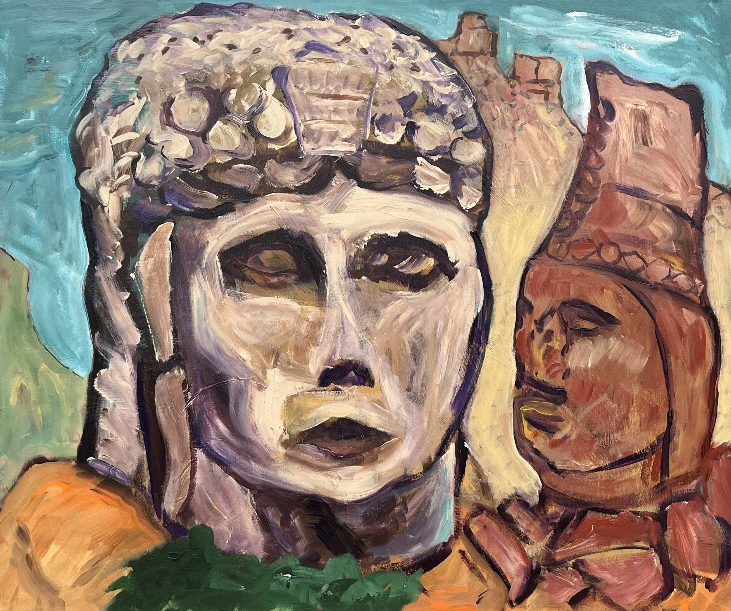 Heads of Nemrut, 30" x 36," 2024, acrylic